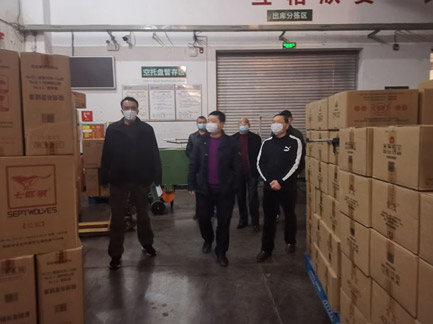 (市局局长熊体科、副经理高友根检查物流中心准备工作)