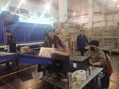 凌晨两点: 营销、信息战线的同事完成订单审核和数据传送,第一台分拣线开机,每小时分拣 14000条。