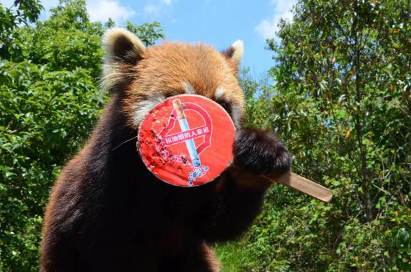 5月30日,云南普洱太阳河国家公园里,可爱呆萌的野生动物们在动物观察员的引导下,举着“不和抽烟的人亲近”的牌子,为即将到来的世界无烟日作宣传。这些动物包括国家一级保护濒危动物白颊长臂猿、国家一级保护动物蜂猴、国家二级保护动物小熊猫及国家二级保护动物猕猴等4种动物。