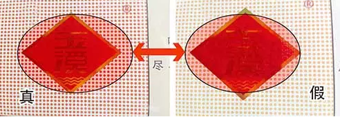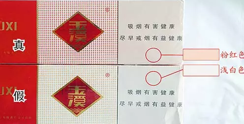 真烟包装右侧颜色呈粉红色,假烟包装右侧颜色呈浅白色。