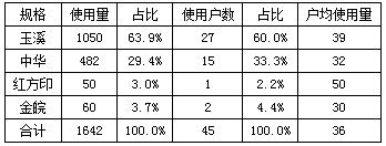 3、婚庆用烟品牌以“中华”、“玉溪”为主,购买渠道主要是自己熟悉或通过熟人介绍的规模型食杂店,一般很少在大型商场、超市购买。