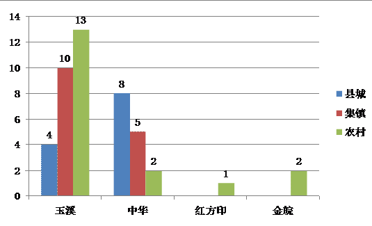 我们通过问卷调查不同的职业人群,发现公职人员对婚庆用烟品牌的选择和接受范围要大于其它职业人群。商人婚庆用烟选择“中华”的比例相对较高,农村居民以“玉溪”作为婚庆用烟的首选,部分集镇区域的居民也开始购买“中华”作为婚庆用烟,这与几年前相比消费档次提升很快,3年前,很多农村居民还购买“黄山新制皖烟”作为婚庆用烟,现在已经基本不再使用。