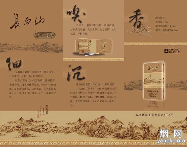 “长白山(沉香)”口味特征突出天然沉香与烟草本香凝为一体的独特香韵,香气醇厚、优雅、绵长,口感细腻、圆润、生津,余味舒适甘甜,令人心旷神怡,藏韵于心。