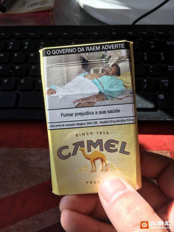 看烟支情况、滤嘴那边有一圈白银色的装饰条 然后下面就是英文字母加一只可爱的肥肥骆驼、