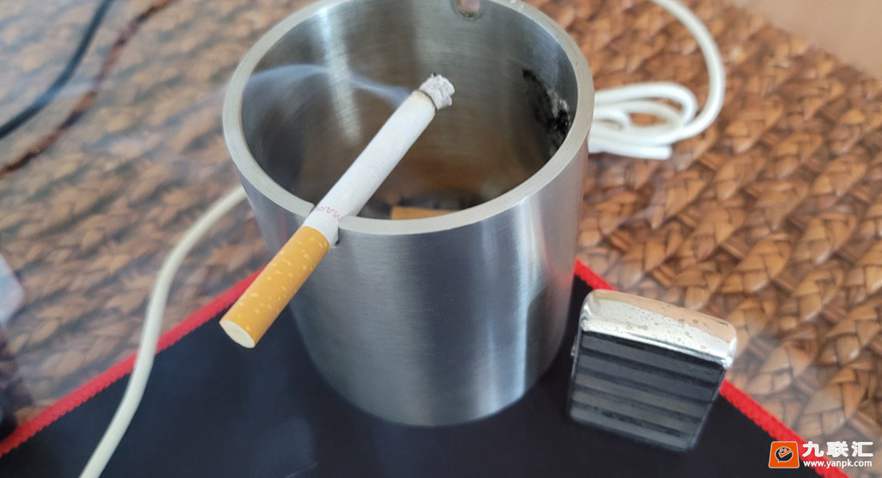 静置烟支,自然速度中等偏快一些,应该是填充比较紧实,燃烧均匀,而烟梗的添加量大一些,燃得比较快。从照片看,燃烧界面清晰,盘纸的包覆性不错,烟灰自持比较好。