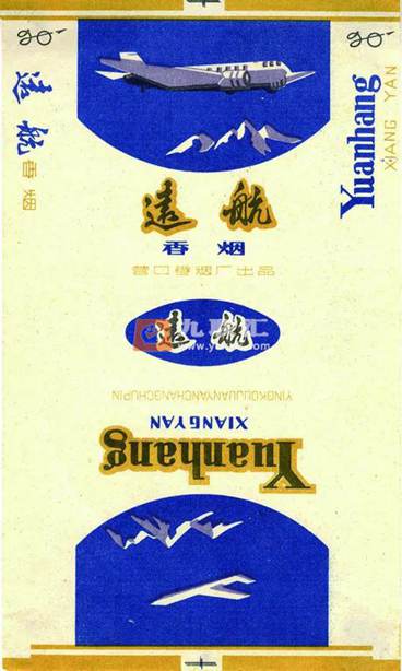 1979年营口卷烟厂根据中国民航入选《国际民用航空公约》这一历史事件,设计生产了一包“远航”牌香烟,烟标主图以客机飞跃高山为背景,由营口新华印刷厂童金山设计,后有郑佩馥修改为金色地球和银色飞机的图案。