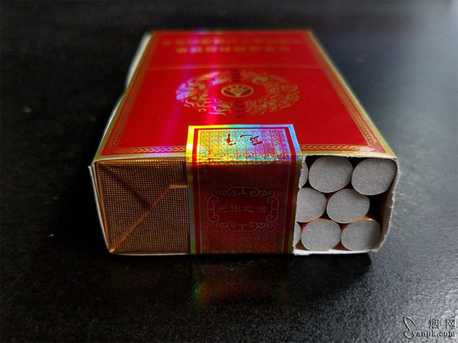 外包装为硬壳软盒,设计风格与五粮浓香几乎相同,以往的宽窄巷子已经消失不见,取而代之的是浓浓的五粮红元素,唯有蓝底金字的宽窄横匾在大片红色之中依然醒目。烟盒左侧是两家公司联合研制的字样,很正式啊。右侧是商品条码与理化指标数据,10/1.0/10的黄金比例。底部是四川中烟的网址与客服电话。顶部封签条的中心部分印着“天作之合”,寓意两家川企以及烟与酒的完美合作。