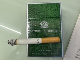 本森绿薄荷味,俗称蛇皮本森,US美国免税本森烟,和英免不同的是美免本森是混合烟,口味类似白金万的味道,淡雅醇厚。