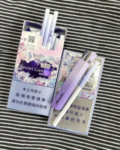 云烟神秘花园新品,香烟届的颜值担当,太漂亮了,温柔的紫色,紫气东来,桂花香玫瑰甜,盒盖上还有独有的设计擦手香,带玫瑰香气。