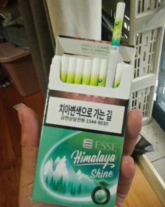 爱喜喜马拉雅晴王,开盒可以闻到浓浓的薄荷香味道神似绿箭口香糖;搭配浅绿色的烟嘴,给人以清新的感觉。烟嘴微甜。咬破爆珠就是浓郁的葡萄香。非常清爽。她是我最喜欢爆珠香烟里面是TOP3,细支没有粗支那么过瘾。