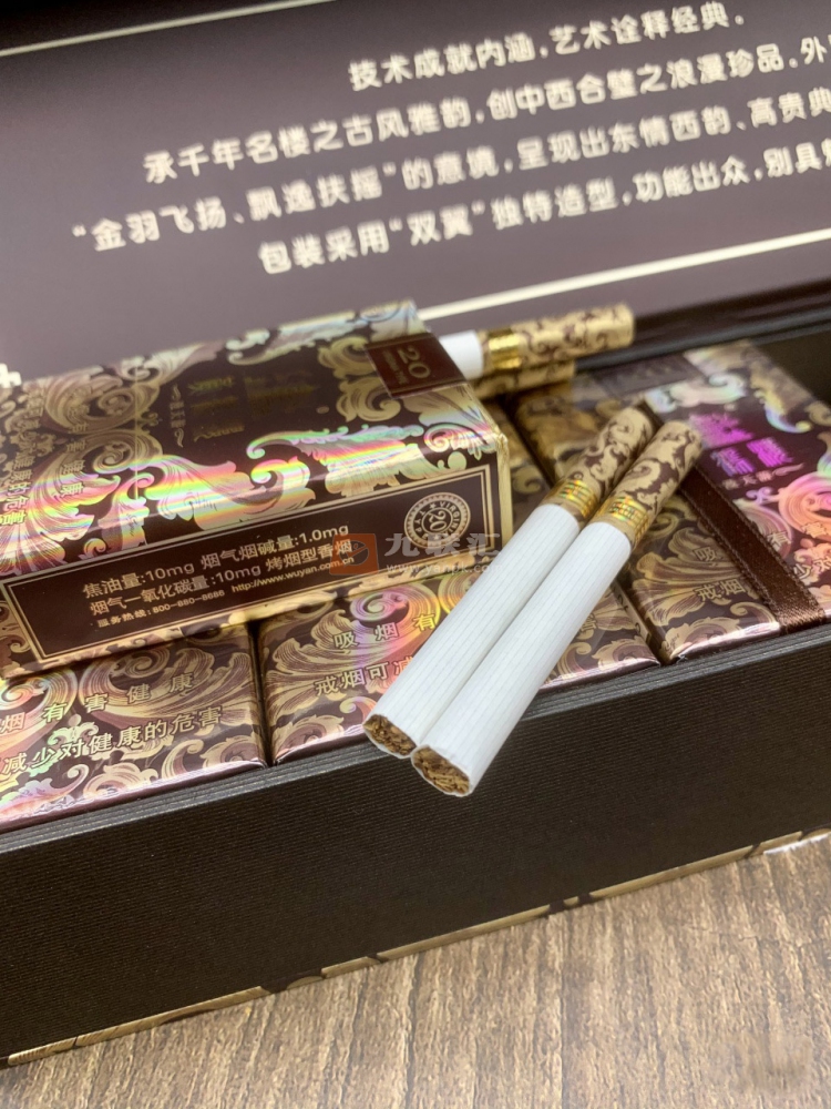 黄鹤楼软漫天游包装设计颇有艺术品风范,金羽飞扬,飘逸扶摇,视觉效果甚是华丽,现在漫天游依旧是最显眼、最夺目。滤嘴有金圈环绕,印有黄鹤楼,很精致。口味上完全展示了楼烟的淡雅香特点,无论小口还是大口都无比顺滑,烟气清柔细腻醇和。