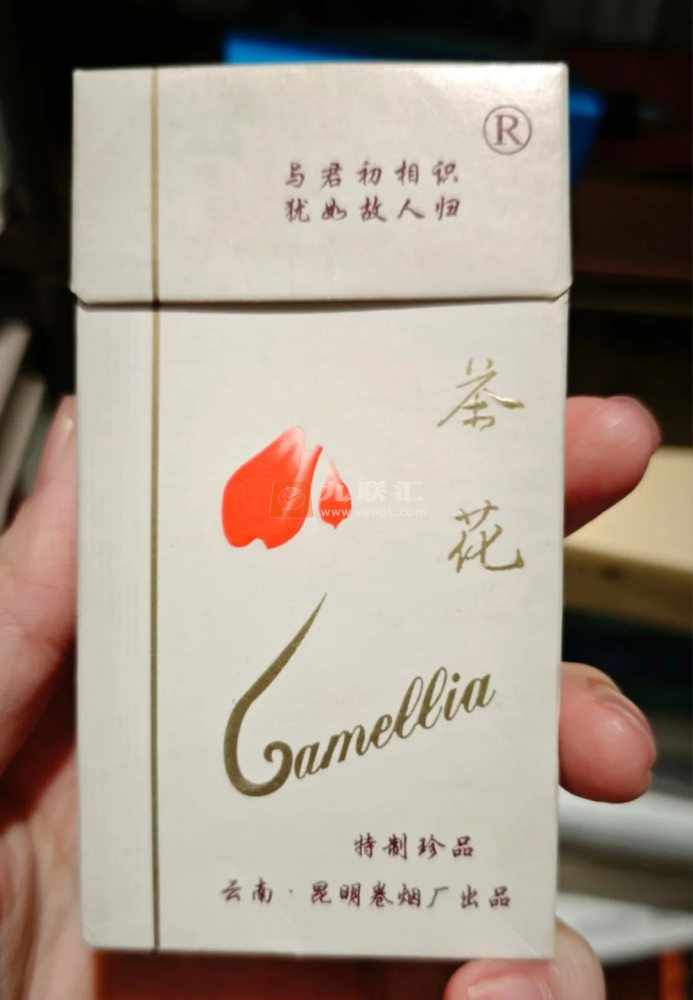 老版本的茶花细支烟,包装很典雅。“茶花”是云南省花,这两字复刻自唐伯虎的手迹,纯白盒子上,一抹含苞待放的红色茶花点缀下,紫光灯一照,花蕾会变成倩丽的少女头像,像极了一位优雅恬静的少女,清丽、高雅、柔情!