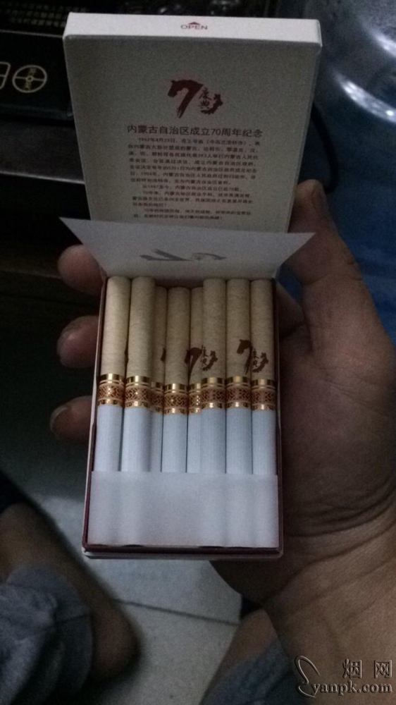 冬虫夏草是内蒙古的高端产品,这个品牌一直的蒙烟的顶级之作,现在国烤的包装名堂太多了,什么题材的都有,这款是内蒙古自治区成立70周年的纪念产品,比较有纪念意义。这烟的包装采用硬盒全开式的包装形式,整体以白色为主色调,色彩素雅,正背面主图案相似,由“70”构成的logo组成,logo图案设计的很精致,具有明显的蒙族特色。烟盒上盖内侧是相关文字描述,挺不错的包装。这烟属于比较FB的产品,包装也是高端大气上档次。
