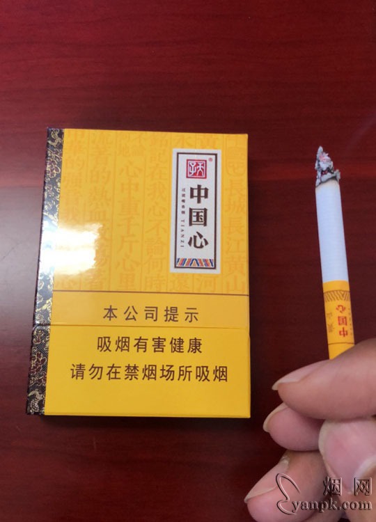 今天去烟店老板极力推荐了款烟,天子中国心,听到名字就必须来一包。首先外包装非常大气,有点古朴的感觉,烟盒侧边有龙的图案,整体感觉很霸气。 烟是中支烟,为什么就不能是粗支呢,总是对细支和中支无爱,哈哈 点燃一支,烟气很饱满,入口挺顺的,捏了爆珠后感觉就是两种烟,爆珠抽不出是什么口味 总体感觉很不错,名字就气得很好,但还是有点小贵,买的55一包,感觉这个烟30多正好,哈哈
