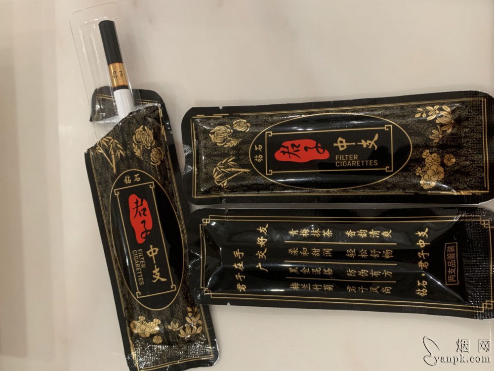 钻石黑君子中子,口味有谈谈的一股梅子味,烟气还可以,比较淡,柔顺,吸食嘴里一股梅甜味,比较怡神。就中支烟来说外观比较小巧,色调深沉带有几分火活拨,总体还可以,就是份量有点少了。我们这零售20元一盒,整条175,每包烟还能扫码,合下来17一包。
