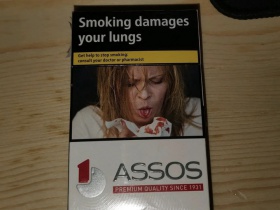 西班牙免税(ASSOS)阿索斯 名称:ASSOS 国家: 西班牙 产地:希腊 销售途径: 免税销售 焦油含量 :10mg 油气烟碱量:0.8mg