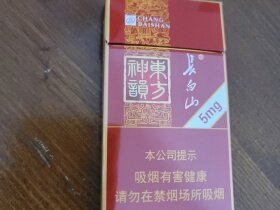 长白山东方神韵5毫克细支,烟盒包装配色正面红背面金,非常三级,虽然焦油只有5毫克,但口感不俗,产地吉林。