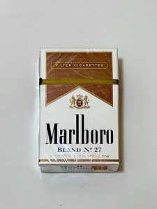 美税密苏里州27万,味道感觉还行,挺不错的,包装的内衬纸也是挺有特色的,像那种铜的颜色,单拿一支出来看了一下,设计也比较不一样,不是单纯的marlboro字样,而是有独特的No27的字样。