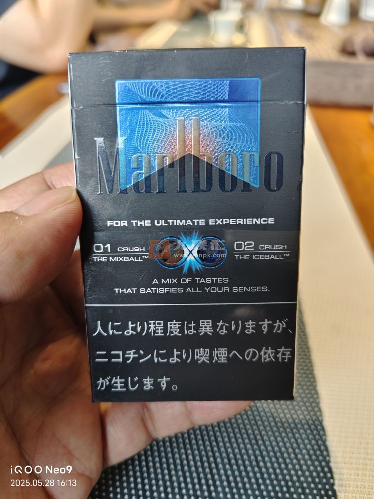 万宝路水蜜桃双爆,是这款吗?日文字的警示语,果味不是太重,但挺香的。